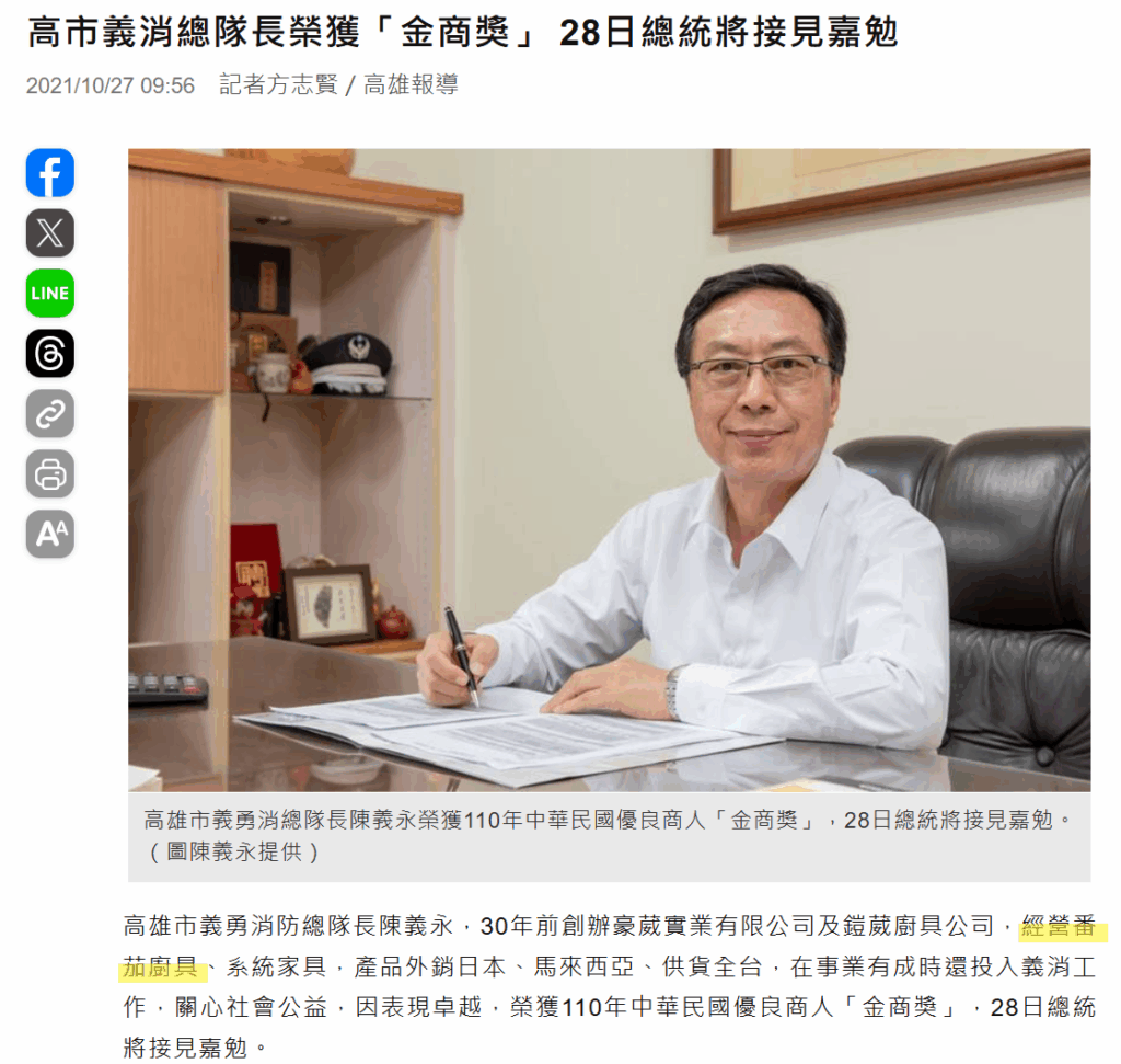 | 公司網址 | TOMATO蕃茄廚具 系統傢俱官方網站 |